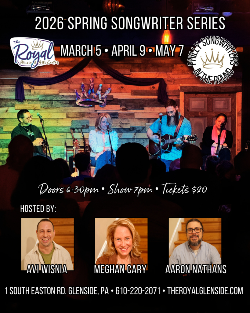 The Philly Songwriters In The Round monthly concert series returns to The Royal music venue every First Thursday. Join me & my partners in rhyme: Meghan Cary & Aaron Nathans, as we host these nights of entertaining and powerful songs & stories in Philadelphia. There’s a new show every month featuring talented artists from around the country and right here in Philly, including… Joe Jencks, Laura Cheadle, John Conahan, Adam Monaco, Jamie Marx, Kat Siciliano and many more.